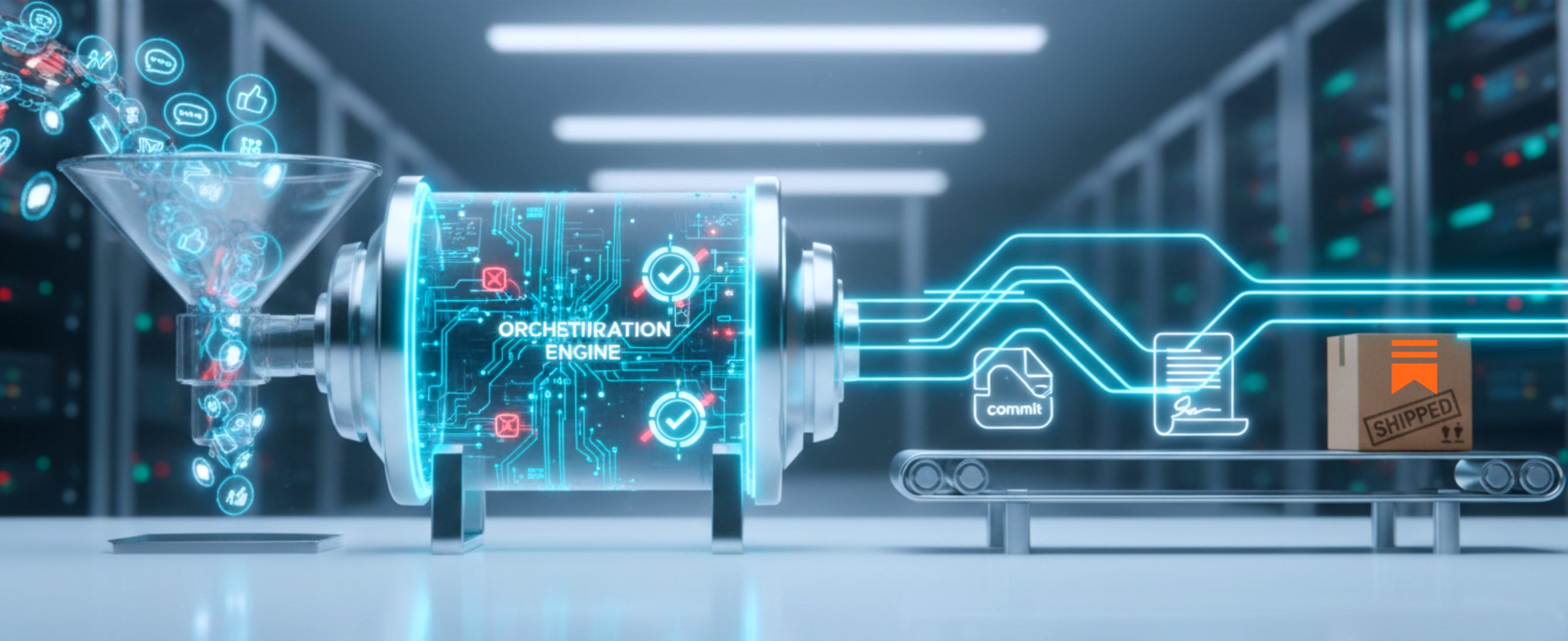 what happens inside the pipe (context, orchestration, governance), and